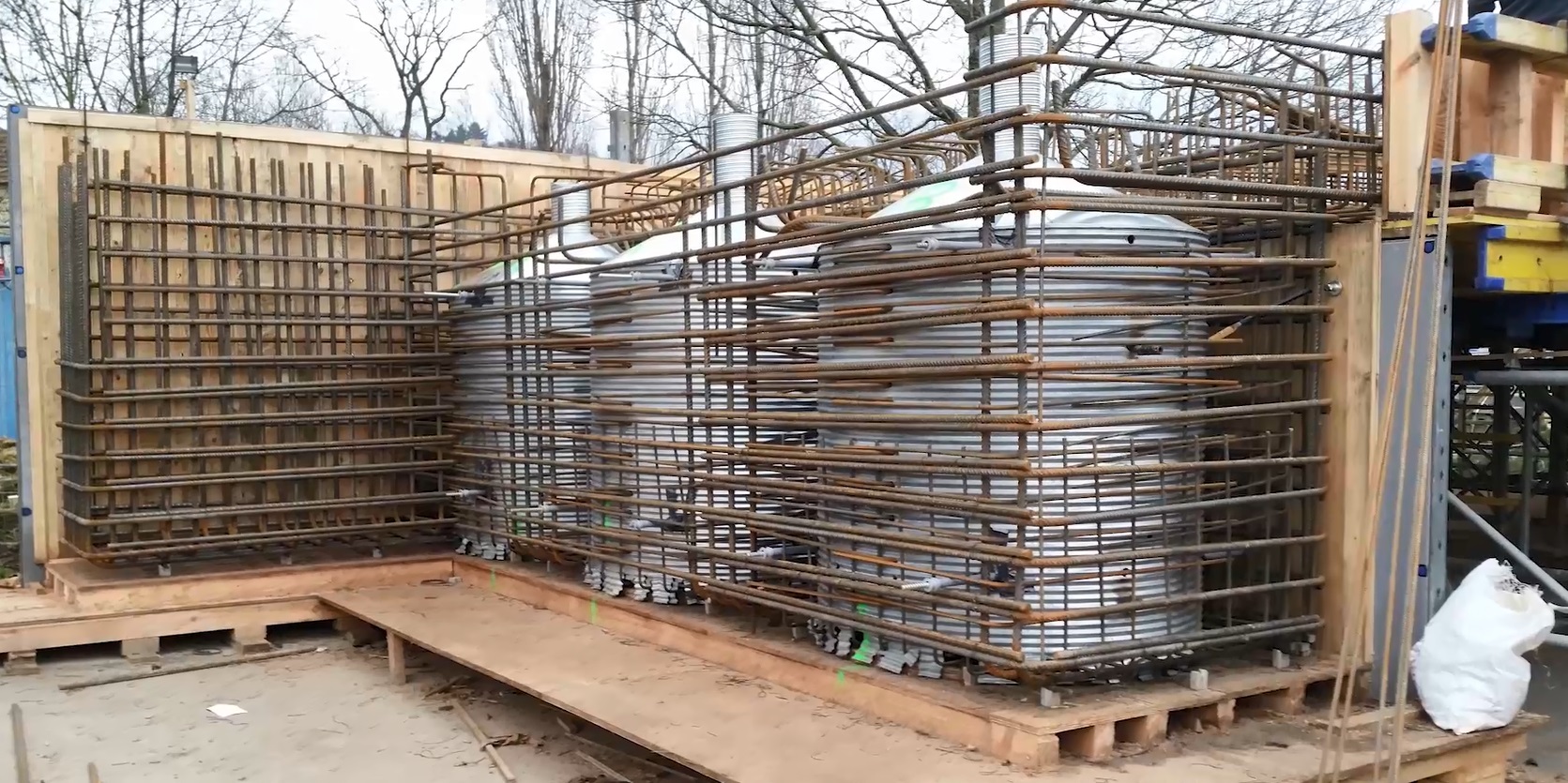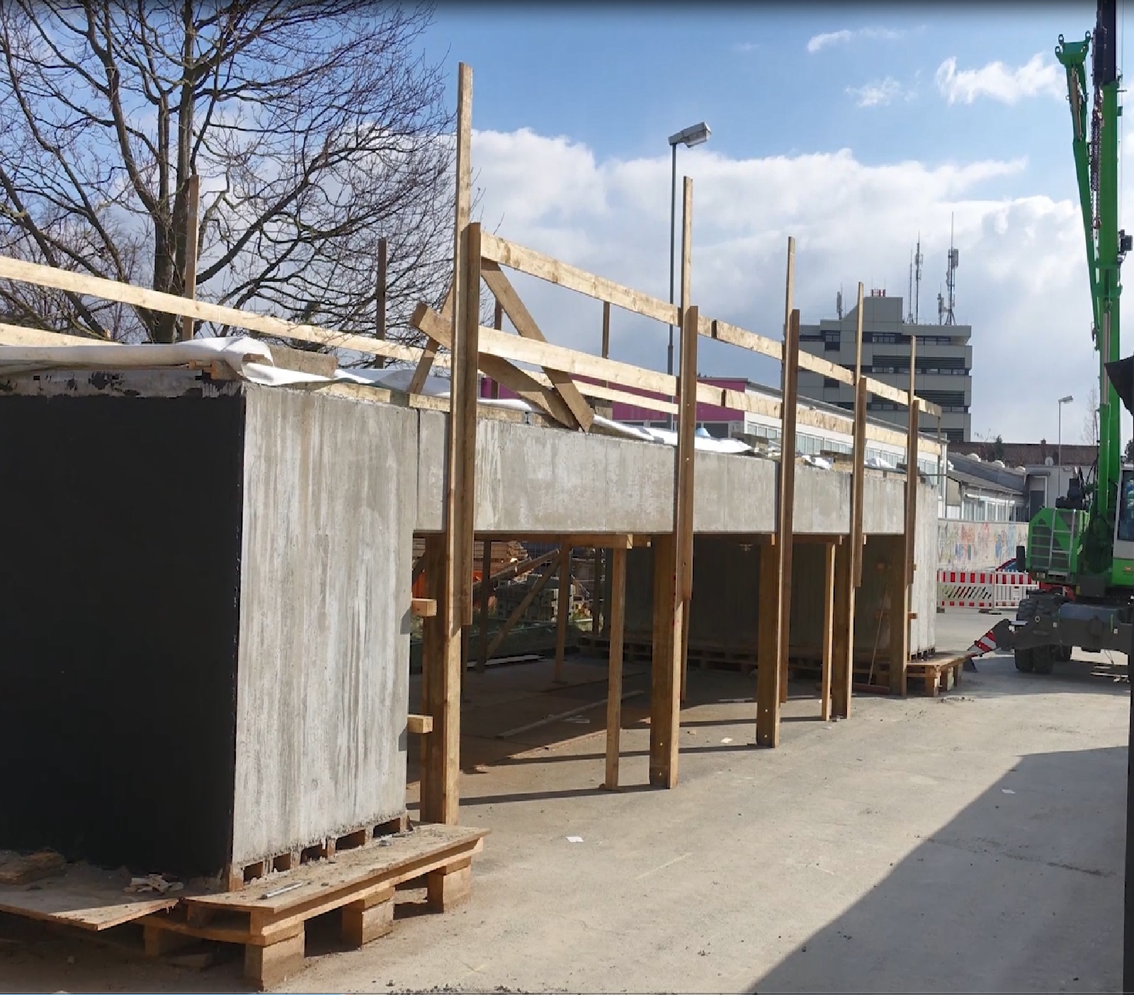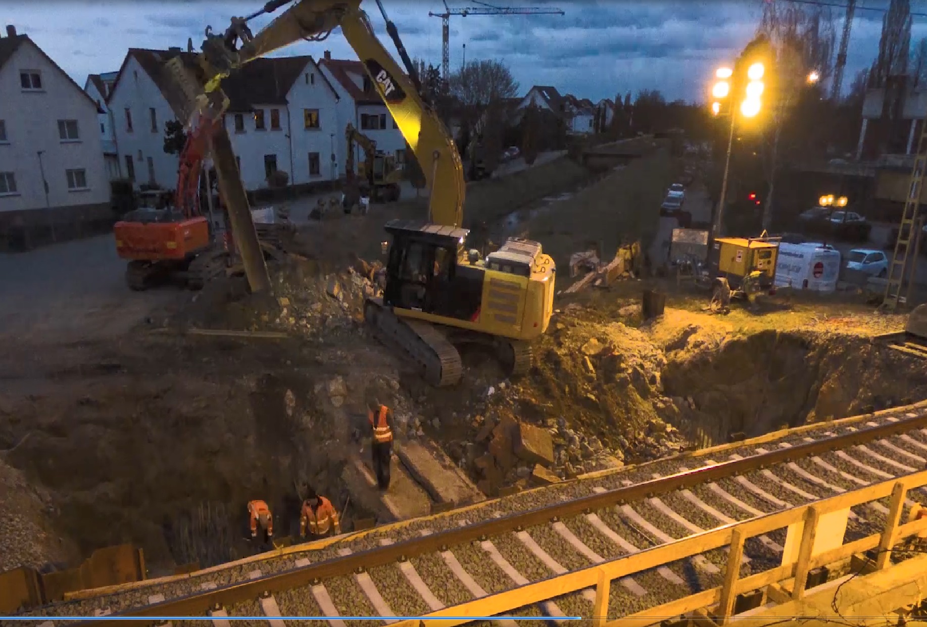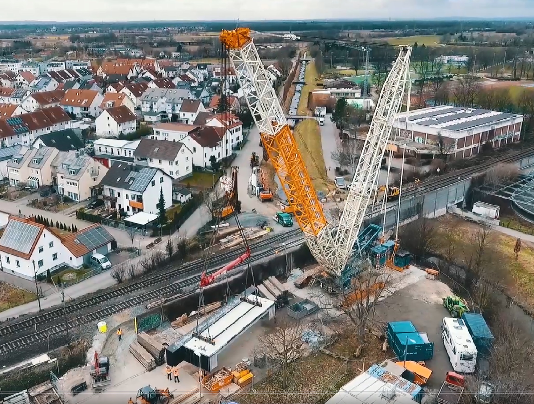 Die Erneuerung der Eisenbahnüberführung über den Winkelbach in Bensheim befindet sich auf der DB-Strecke Frankfurt (Main) Hbf - Heidelberg-W. Es werden zwei elektrifizierte Gleise überführt. Das alte Bauwerk bestand aus WIB-Konstruktionen, auf Grund des schlechten Zustandes musste es erneuert werden. Die neue Überführung besteht aus zwei mit einer Längsfuge getrennten Stahlbetonhalbrahmen, diese sind auf Bohrpfählen tiefgegründet. Zunächst sind in einer ersten Sperrpause die Bohrpfähle und die erforderlichen Verbauten eingebracht worden. Die Pfahlkopfbalken wurden zusammen mit den Überbaudecken außerhalb des Gleisbereichs vorgefertigt. In den Pfahlkopfbalken sind runde Aussparungen zur späteren Aufnahme der Bohrpfahlbewehrung vorgesehen worden. Während zwei weiterer Sperrpausen wurden die Rahmen mit einem Raupenkran eingehoben. Anschließend konnten die Aussparungen in den Pfahlkopfbalken nach dem jeweiligen Einhub vergossen und der Oberbau wiederhergestellt werden.