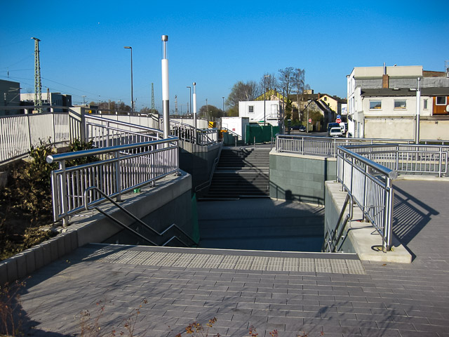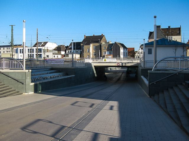 Im Zuge der BÜ-Beseitigung „Südertor“ ist zur Überführung der drei Gleise der DB-Streke 1760 eine Eisenbahnbrücke und wegen des hochanstehenden Grundwassers ein ca. 142 m langes Trogbauwerk gebaut worden. Die EÜ ist als Rahmenbauwerk in Deckelbauweise gebaut worden. Dabei werden zwei Gleise auf einem Überbau und das dritte Gleis auf einem getrennten Überbau überführt. Die Überbauten sind auf einem durchgehenden Pfahlkopfbalken und einer überschnittenen Bohrpfahlwand Ø 1,20 m tiefgegründet. Die EÜ besitzt eine Stützweite von Ls = 12,30 m. Die Überbauten wurden seitlich der Endlage hergestellt und während einer Sperrpause eingeschoben. Nach dem Einschub wurden sie vorübergehend auf Steckträgern, die in die Bohrpfähle betoniert wurden, und einem Erdstock zwischen den Pfahlwänden aufgelegt. Im Folgenden sind die Pfahlkopfbalken unter laufendem Eisenbahnverkehr bewehrt und betoniert worden. Nach Fertigstellung der EÜ wurde die Baugrube für das Trogbauwerk ausgehoben und das Trogbauwerk samt Zugangsanlagen hergestellt. Das Trogbauwerk besteht aus 9 Bauwerksblöcken, die in einer wasserdichten Baugrube bestehend aus einer überschnittenen Bohrpfahlwand hergestellt wurden. Die Trogsohle ist an die Bohrpfahlwand betoniert worden und dient zur Aussteifung der EÜ.
