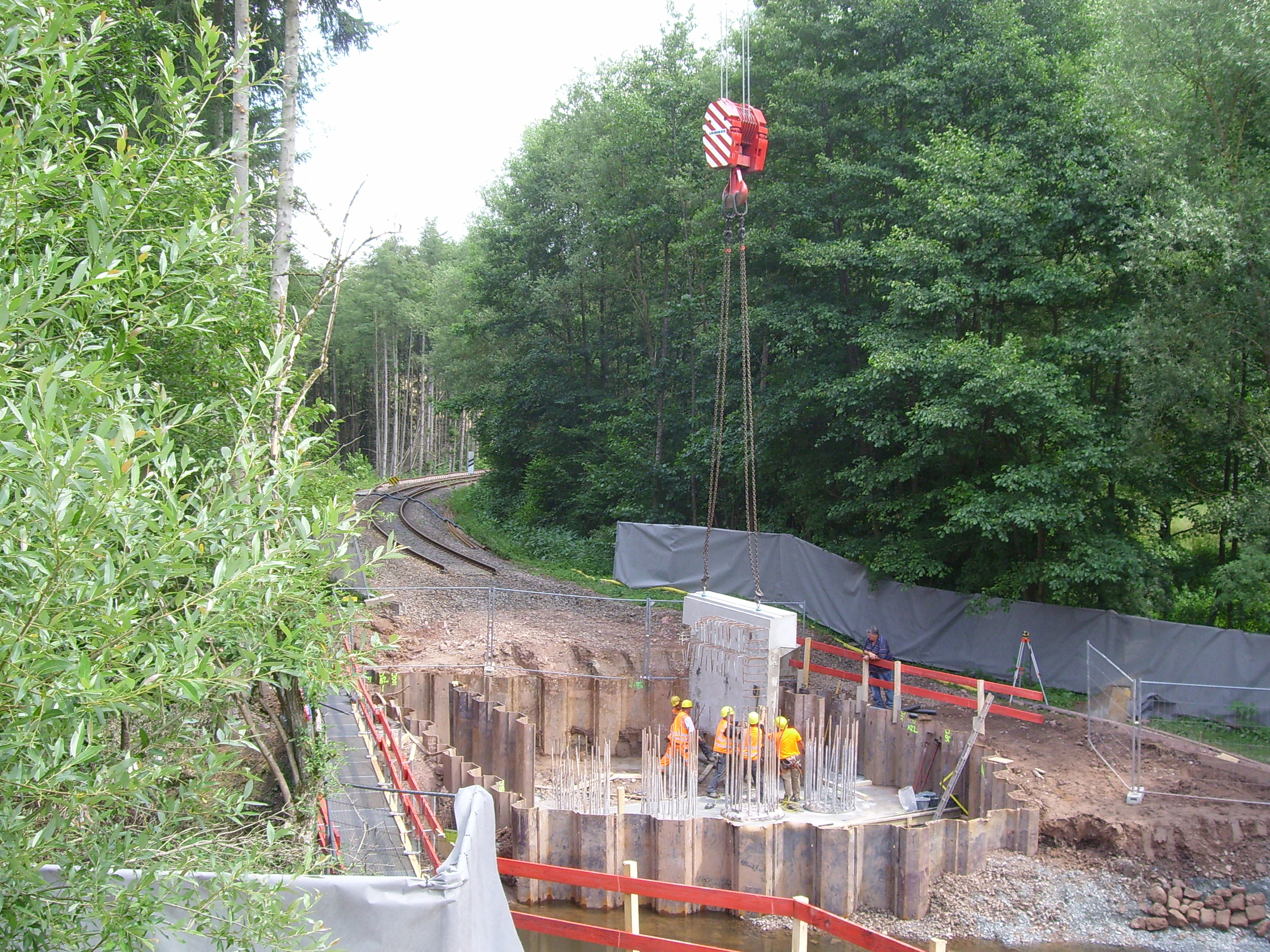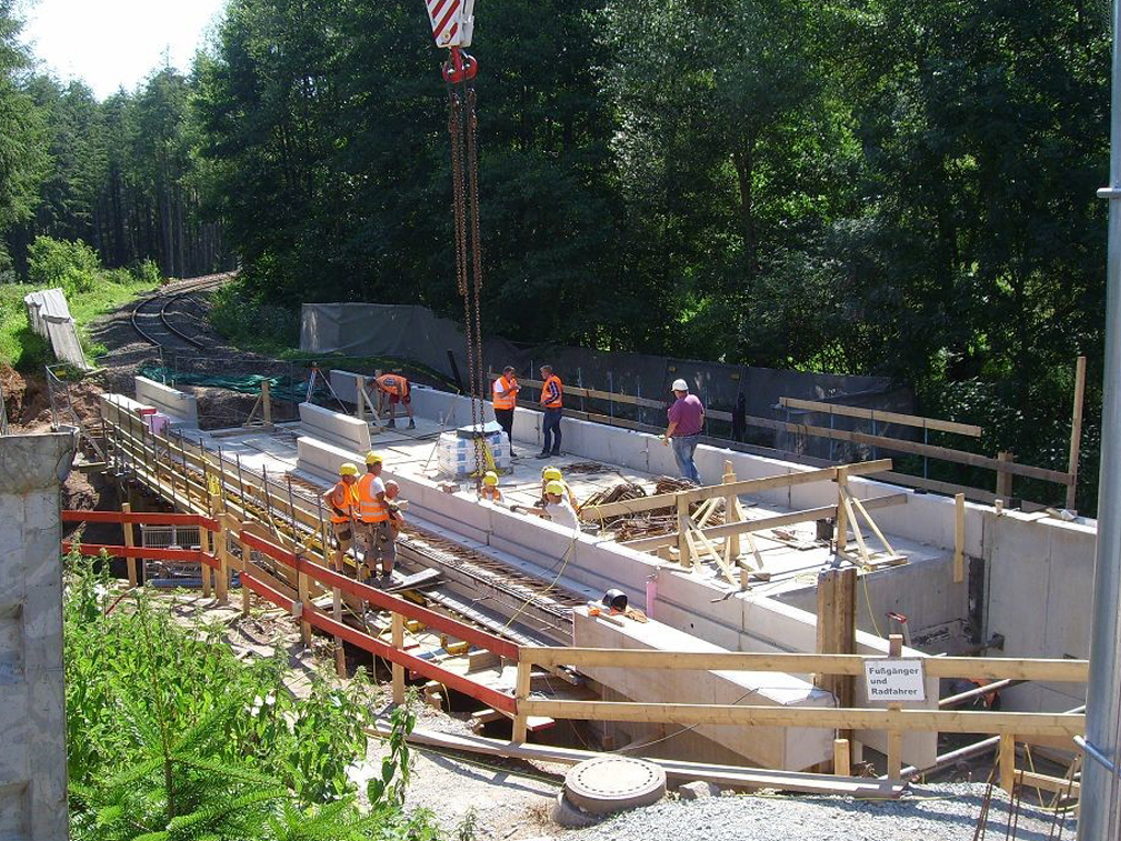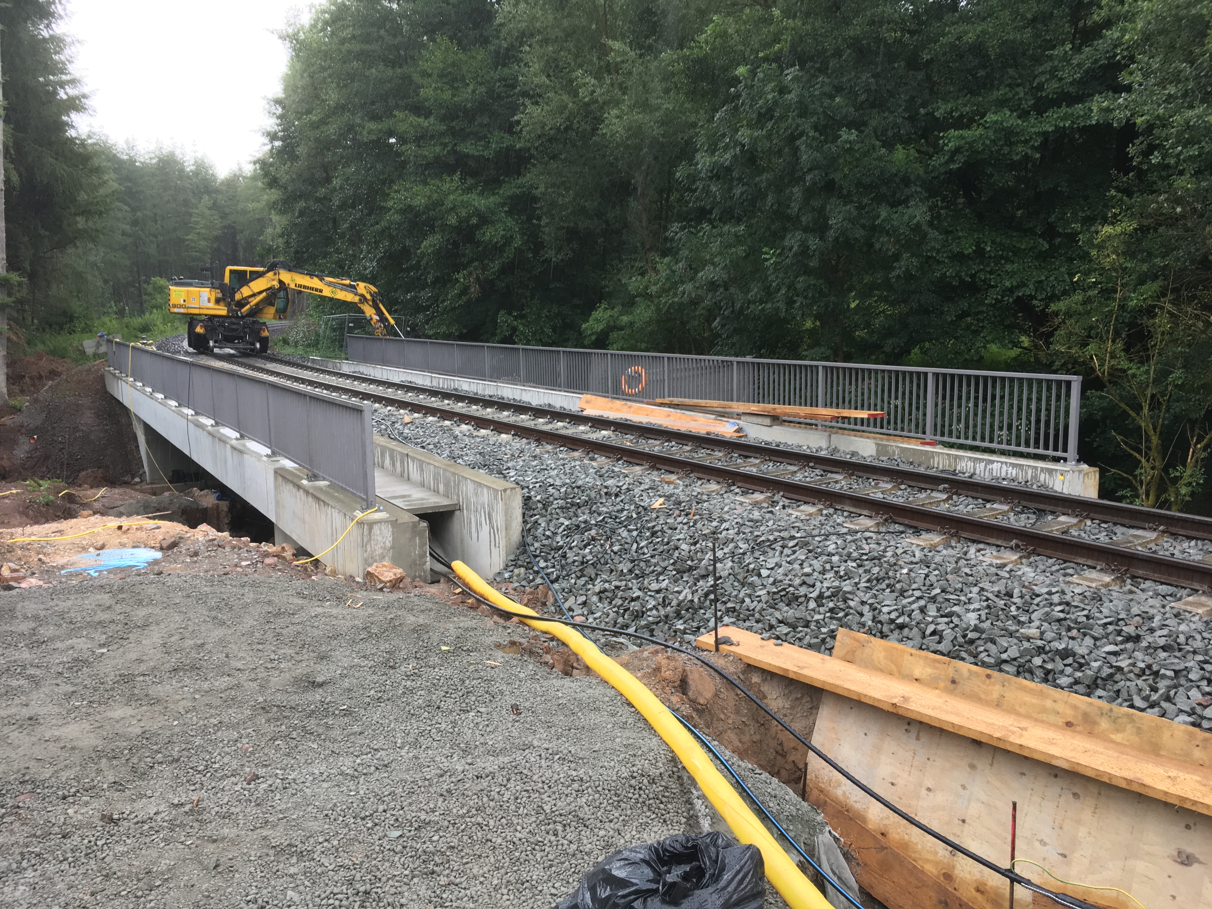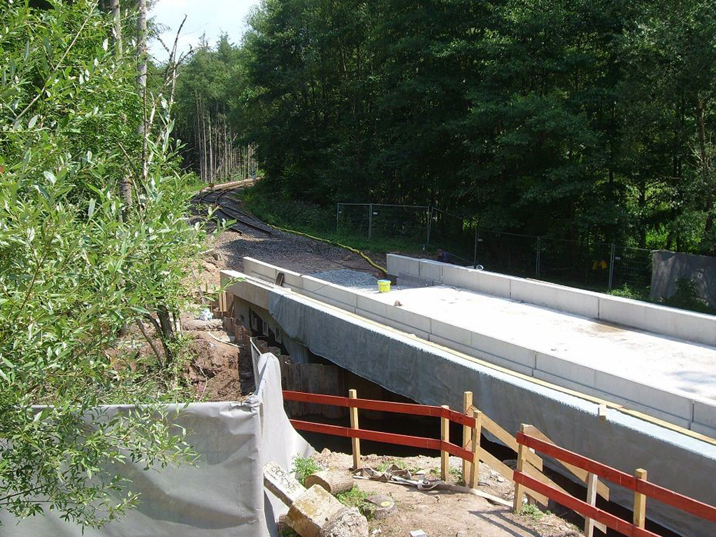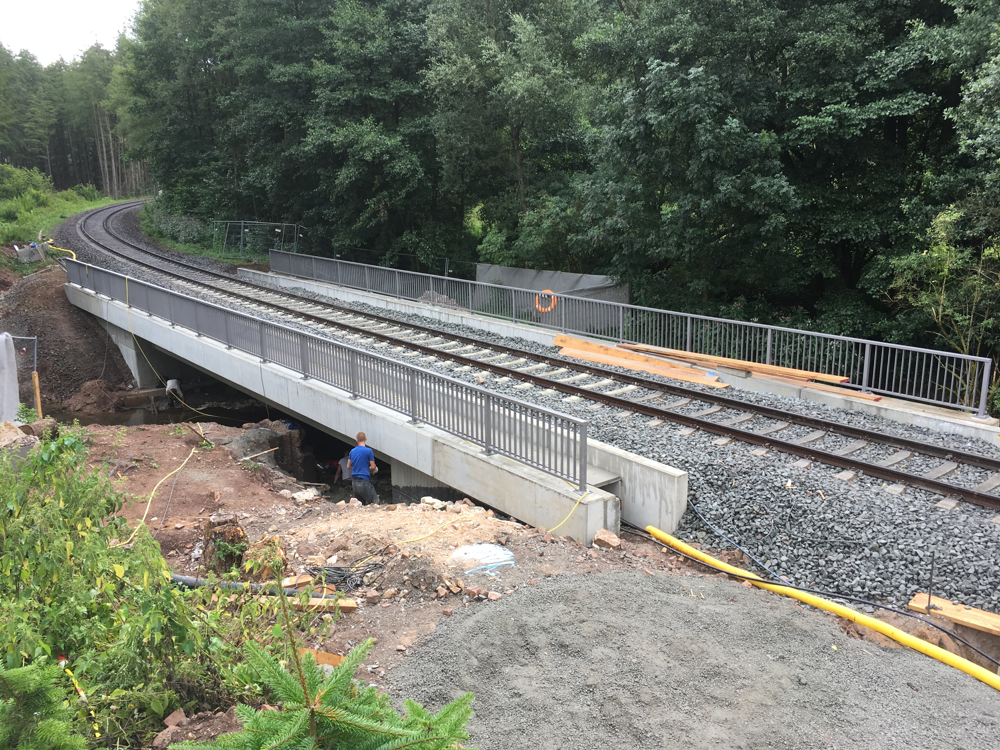 Erneuerung der Eisenbahnüberführungen auf der Strecke der Lautertalbahn Auf der eingleisigen Strecke 3302 (Lautertalbahn) bei Kaiserslautern wurden im Rahmen einer Gesamtmaßnahme 6 Eisenbahnüberführungen von WPI erneuert. Hier sind unsere Entwürfe mit unser anschließenden Ausführungsplanung durch die Firma H. Klostermann Baugesellschaft mbH in den Sommerferien 2018 gebaut worden.