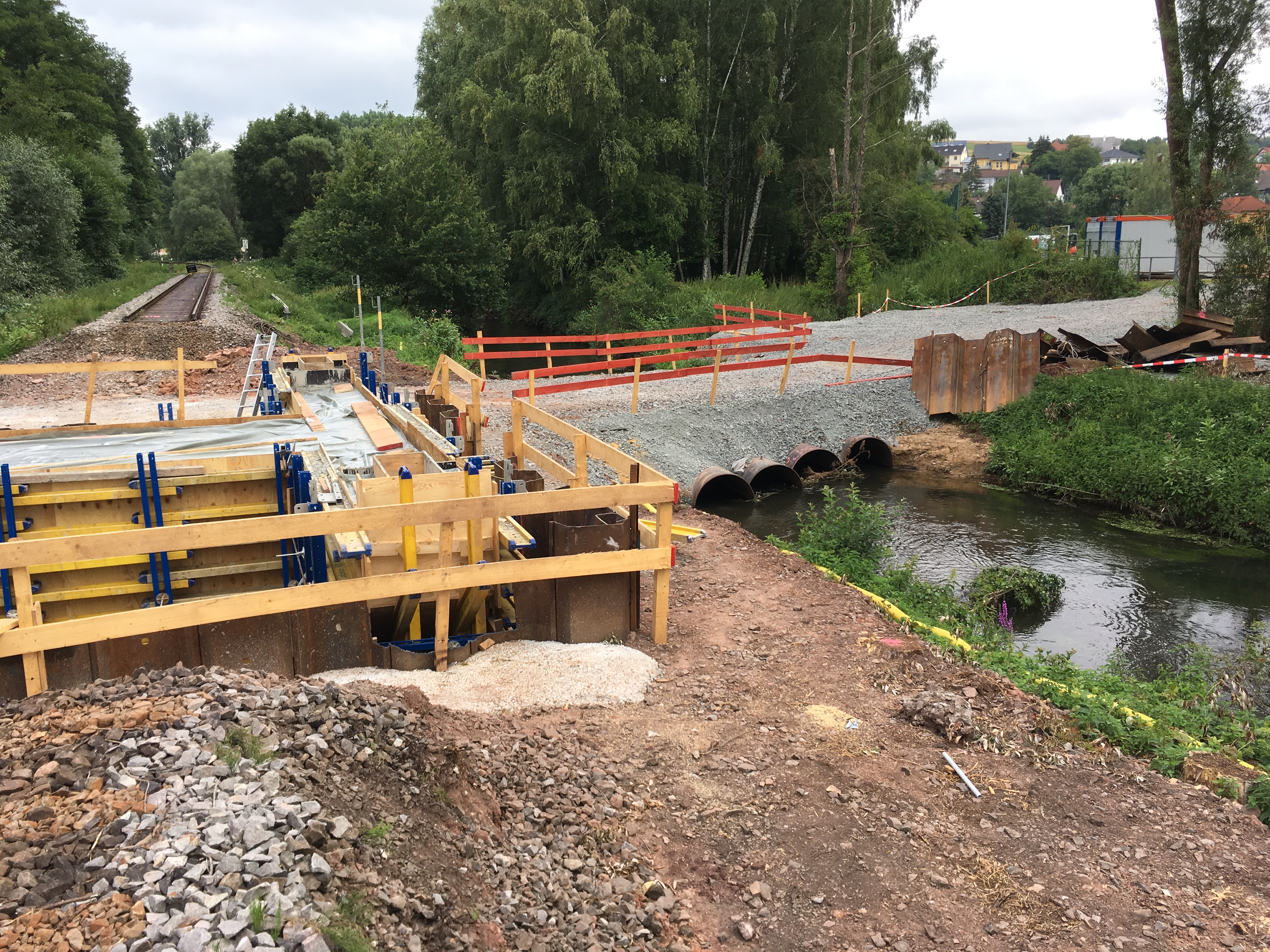 Erneuerung der Eisenbahnüberführungen auf der Strecke der Lautertalbahn Auf der eingleisigen Strecke 3302 (Lautertalbahn) bei Kaiserslautern wurden im Rahmen einer Gesamtmaßnahme 6 Eisenbahnüberführungen von WPI erneuert. Hier sind unsere Entwürfe mit unser anschließenden Ausführungsplanung durch die Firma H. Klostermann Baugesellschaft mbH in den Sommerferien 2018 gebaut worden.