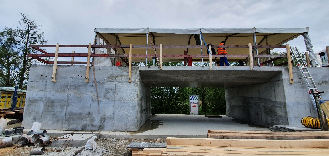 Bei der EÜ Aushamer Bach in km 17,947 und EÜ Höhenstädter Bach in km 18,542 handelt es sich in beiden Fällen um eine Stahlbeton Halbrahmen Konstruktion mit beidseitig gleisparallelen Flügeln. Der Stahlbetondeckel, bestehend aus der Rahmenecke und den Kopfbalken, wurde auf 3 Bohrpfählen je Widerlagerseite gegründet. Die Bohrpfähle wurden zu Beginn der Sperrpause eingebracht, wobei der Überbau vorab neben den in Betrieb befindlichen Gleisen hergestellt wurde. In den Kopfbalken wurden dabei Aussparungen zur späteren Aufnahme der Bohrpfahlbewehrung ausgebildet. Im Verlauf der Sperrpause wurde der Deckel mittels Einhub in Endlage gebracht und die Aussparungen für die Bohrpfahlwände mit Vergussbeton verfüllt. Die Flügel wurden als Doppelwand eingehoben und in Endlage mit Ortbeton ergänzt.