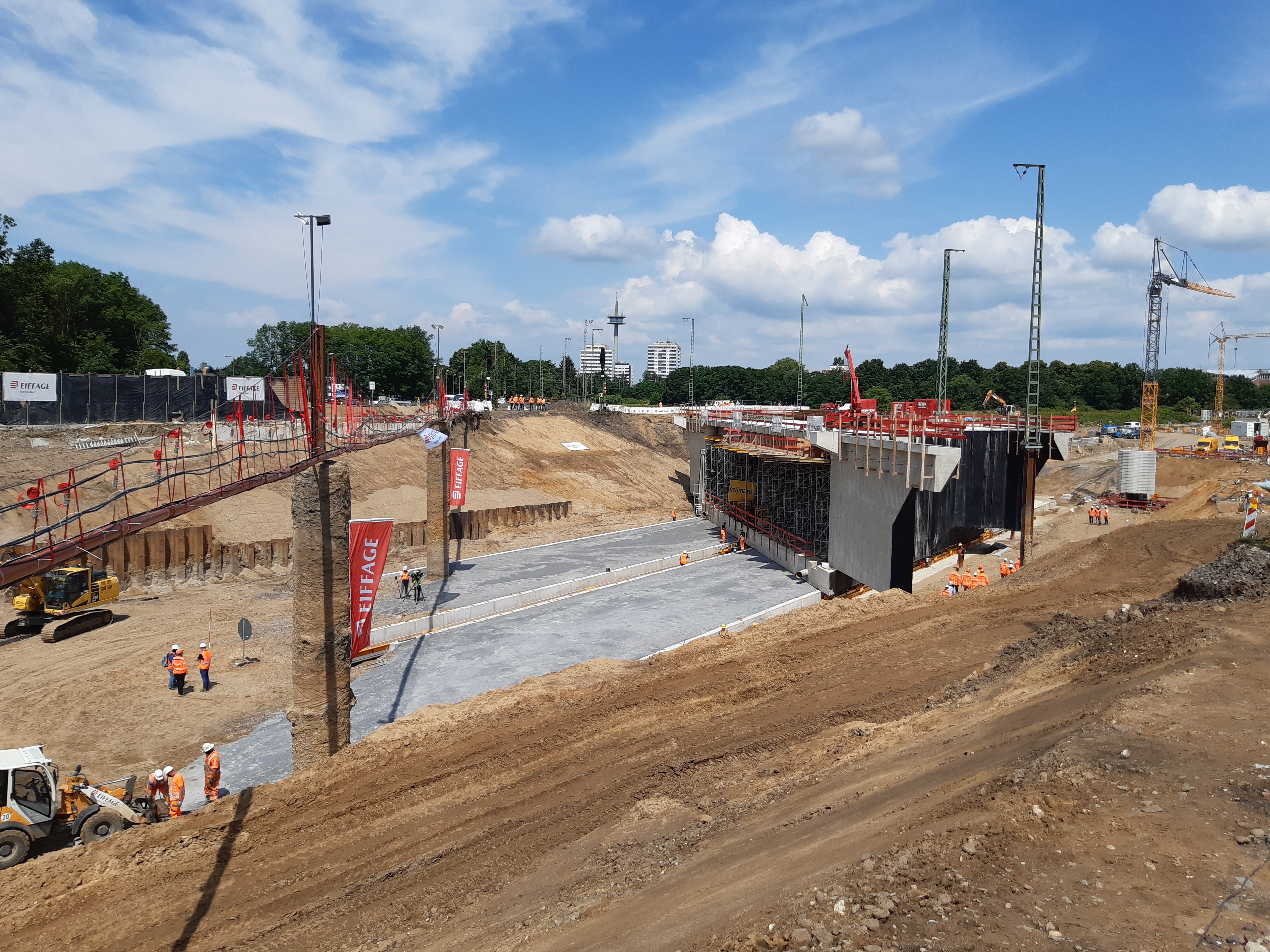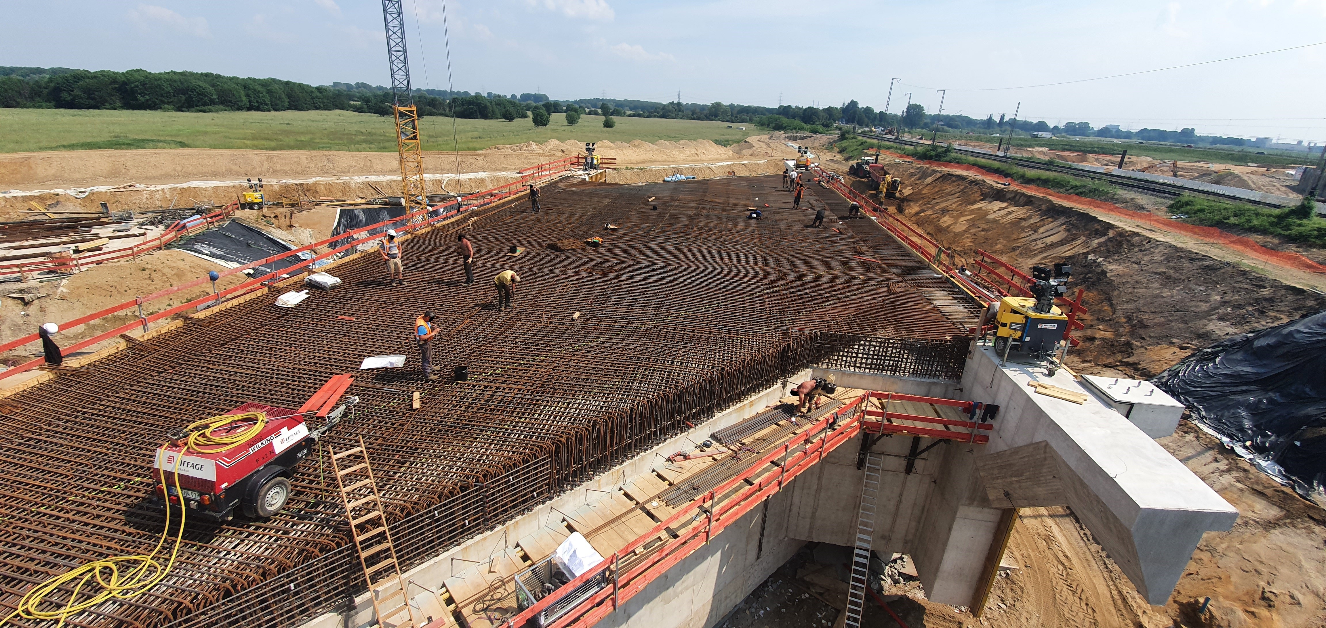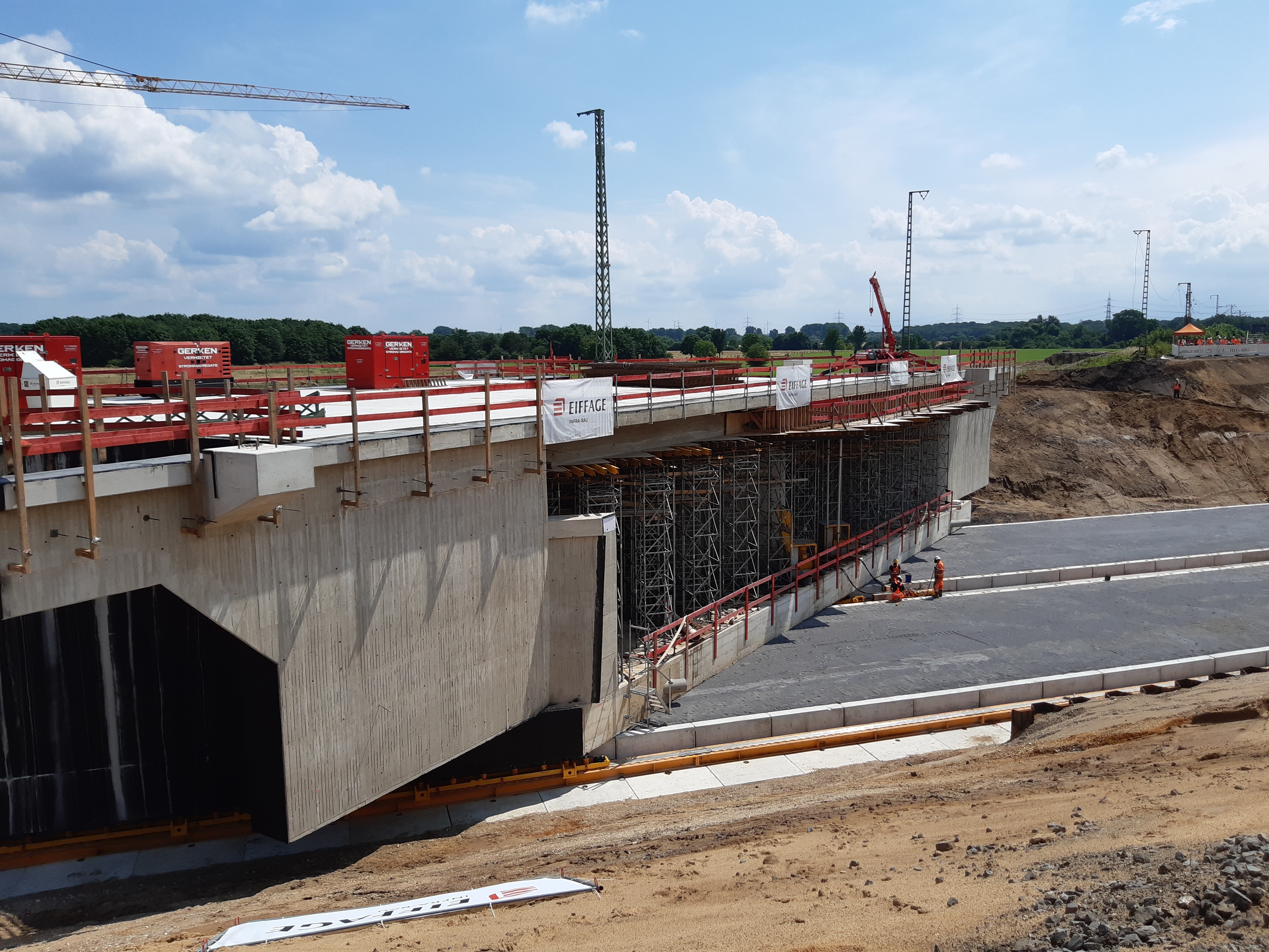 Das Bauvorhaben umfasst 2 Neubauten, eine Eisenbahnüberführung und eine Straßenüberführung, für den Landesbetrieb Straßenbau NRW in Wesel.