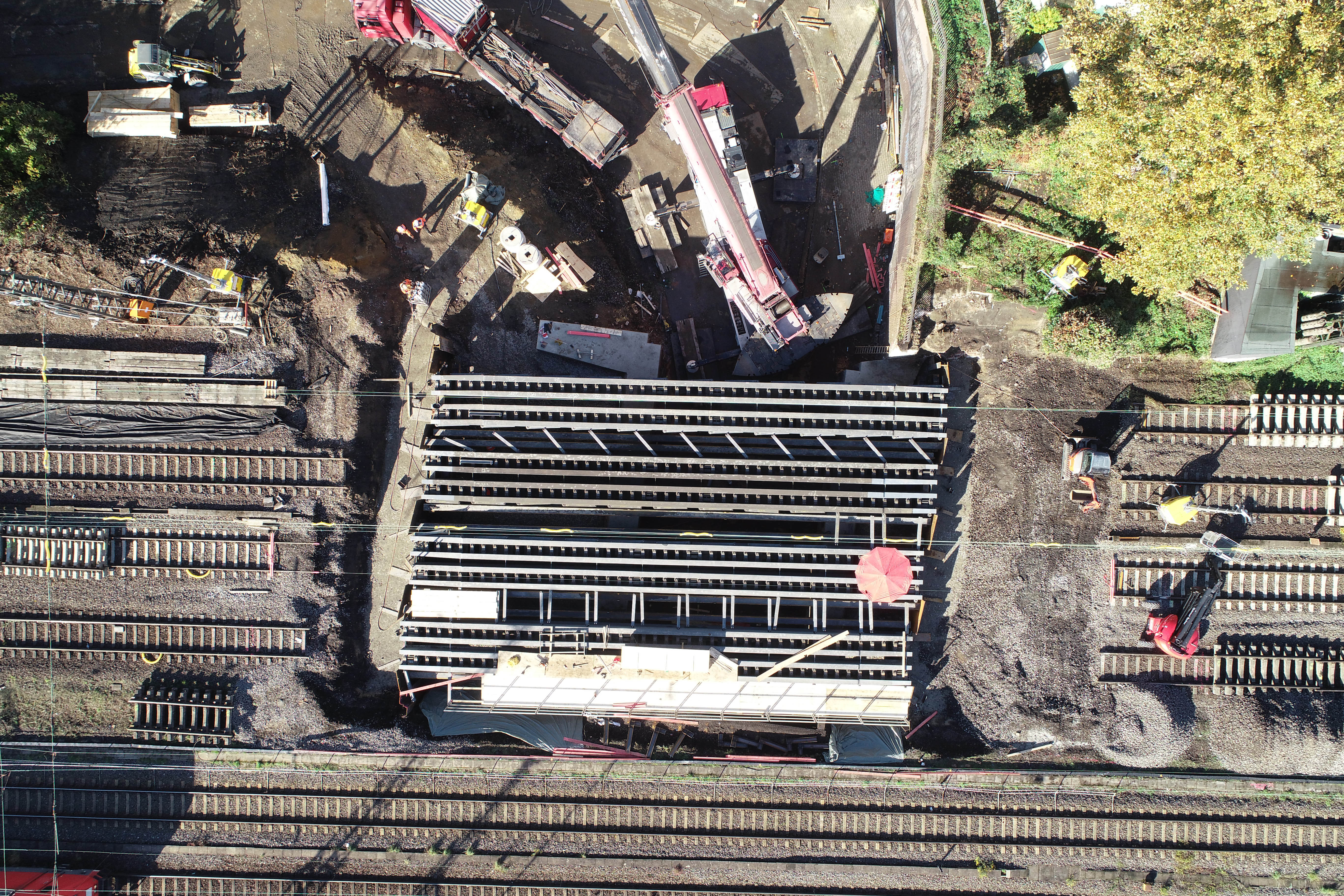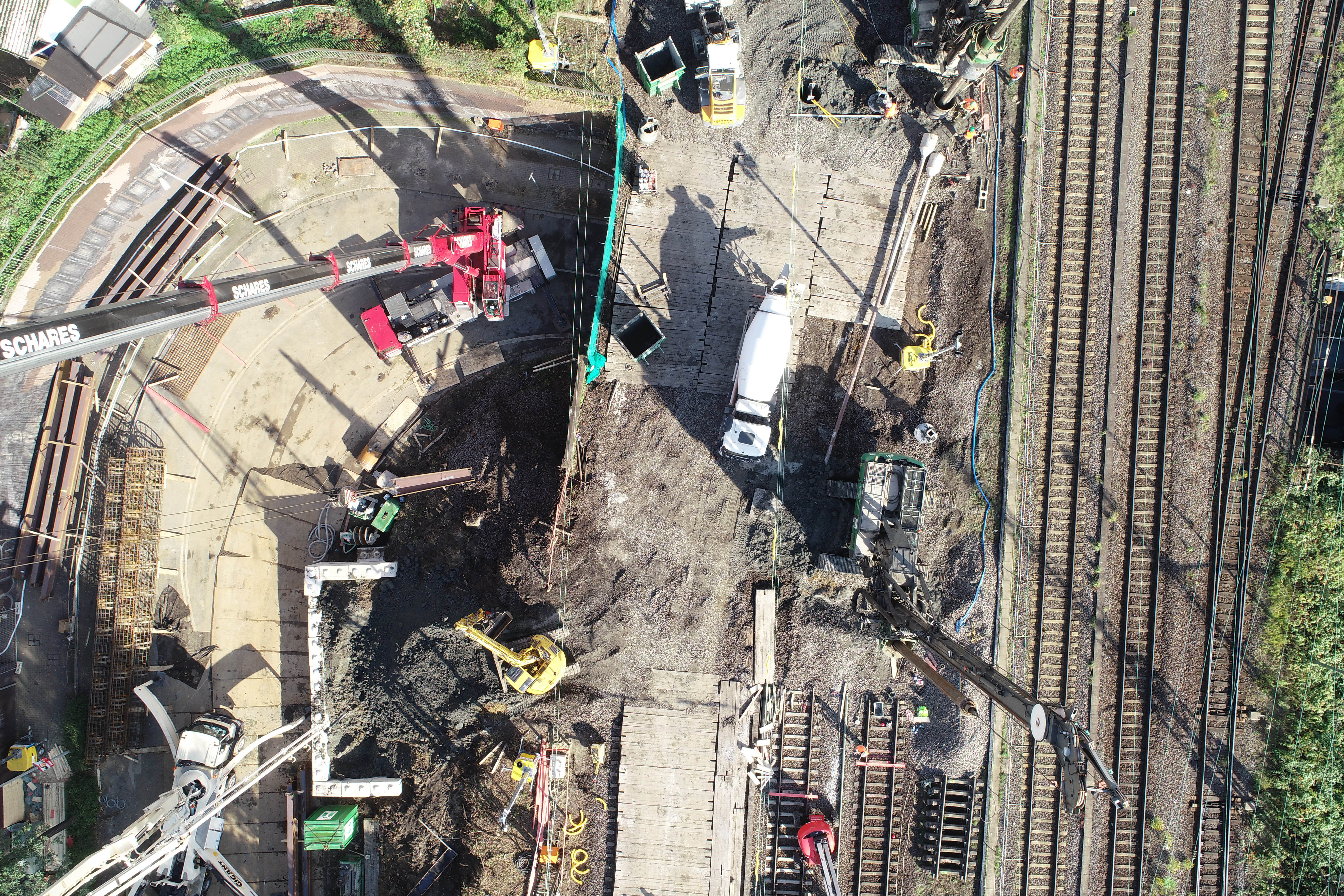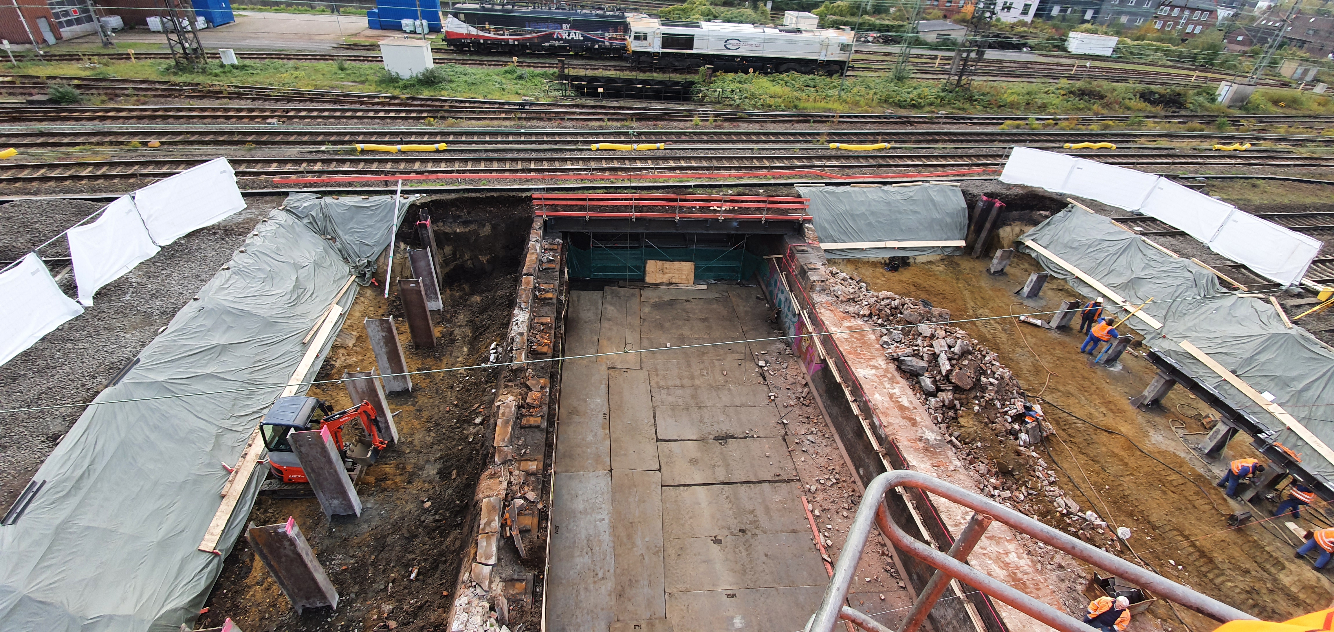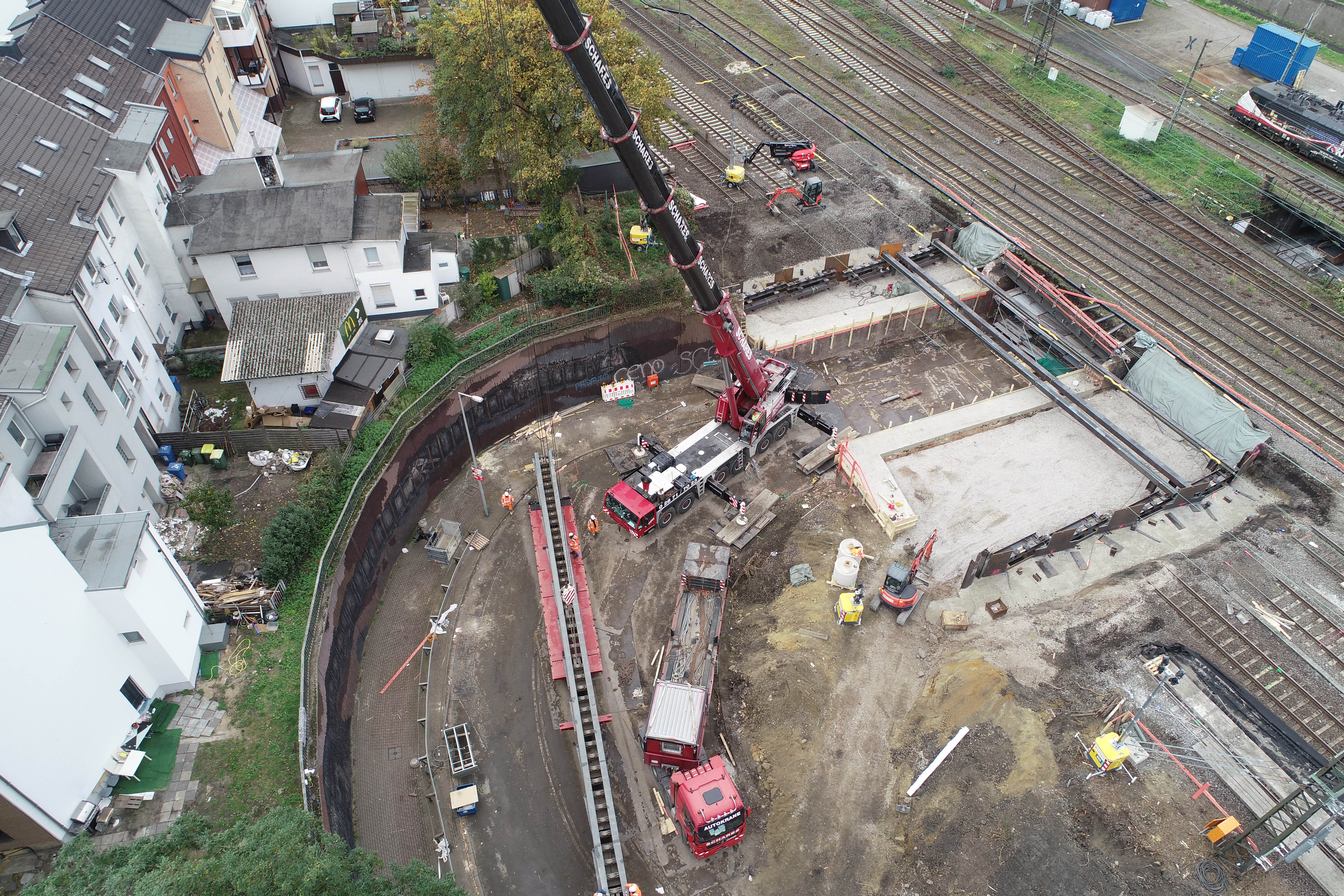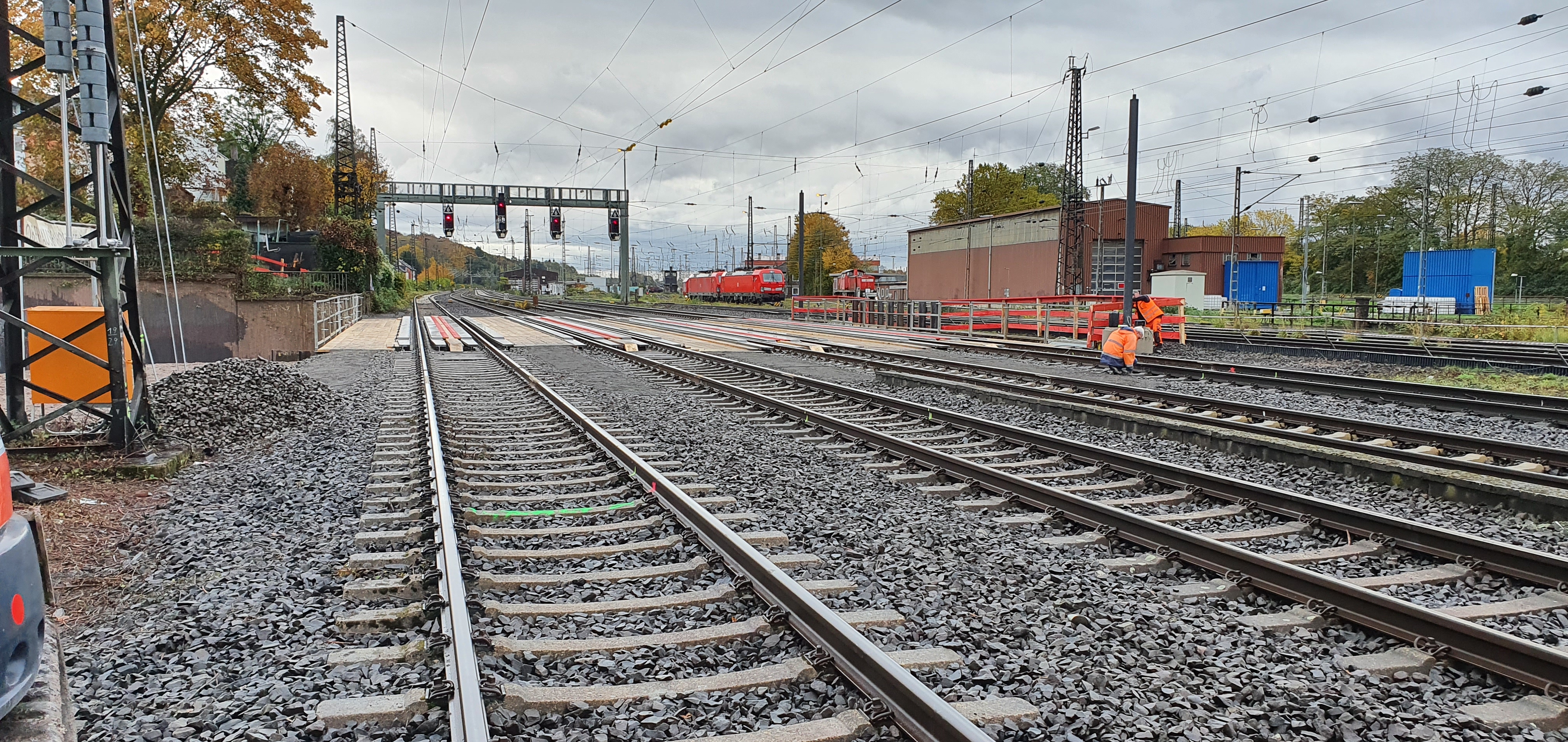Vorabmaßnahme für den Umbau der EÜ Osterfelderstraße Das Bauwerk liegt in Oberhausen auf der DB-Strecke zwischen Oberhausen Hbf und Bottrop Hbf. Im Zuge eines Gleisumbaus soll die bestehende EÜ ersetzt werden. In einer Vorabmaßnahme sind zunächst vier Hilfsbrücken ZH 24 eingebaut worden. Diese sind auf einem Bohrträgerverbau aufgelagert. Dieser ist so dimensioniert, dass er bei der Folgemaßnahme zur Herstellung des Endzustands verwendet werden kann. Strecke: 2250 Bahn-km: 0,600 Planung: 2020 Bauherr: DB Netz AG Auftraggeber: Eiffage Infra-West GmbH